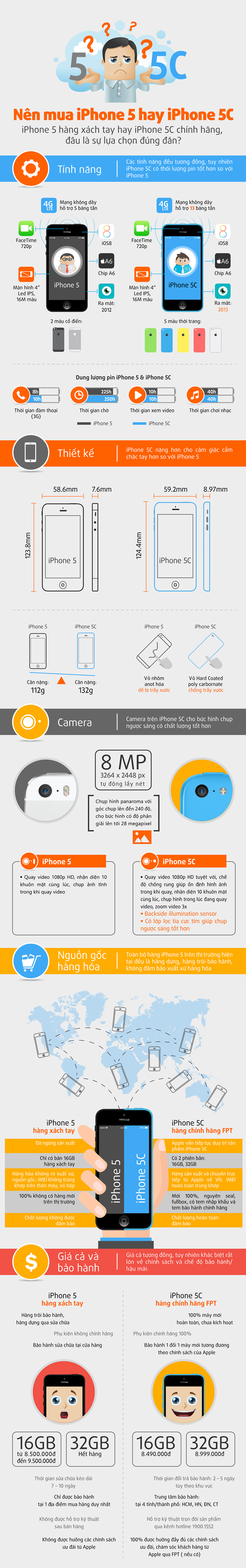 Với nhiều nét tương đồng về cấu hình, giá tiền nhưng khác nhau về thời điểm ra mắt, thiết kế và nguồn gốc hàng hóa, nhiều người dùng băn khoăn khi lựa chọn iPhone 5 hay iPhone 5C.